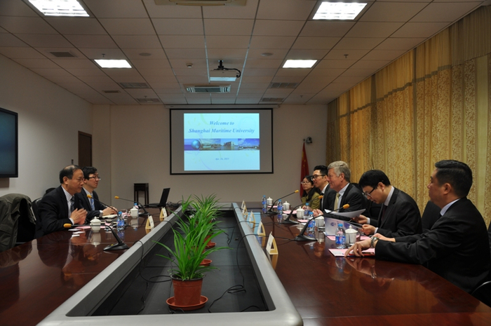 近日,我校客座教授、波罗的海交易所总裁潘杰明(Jeremy Penn)一行5人来校访问。校党委书记金永兴书记及交通运输学院负责人与来宾会谈。