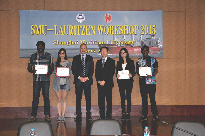 劳瑞森散货公司4位代表与我校50余名学生进行了分组讨论,并从中选出了交通运输学院的王姝画、陈虹宇,经济管理学院的陈楚楚、毛玲苏,和留学生Baffoe Benjamin Ohene Kwapong, Kordieh Jnr Beniamin, Bissemb Celestin Delphin, 和Aggrey-Mills Joseph等8名学生被评为本届研讨会的优胜者。金永兴书记与Peter Borup先生共同为获奖学生颁发了证书和奖金。