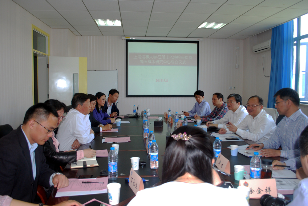 5月8日上午,上海海事大学与江阴出入境检验检疫局压载水研究中心、江阴出入境检验检疫局干部研修基地揭牌仪式在我校海洋楼408会议室举行。江苏省出入境检验检疫局副局长蒋原、动植处处长吴新华,江阴出入境检验检疫局局长戴云徽、副局长李浩,我校副校长肖宝家,海洋科学与工程学院、组织部、科技处等学院、部门负责人,压载水研究专家组成员等出席仪式。