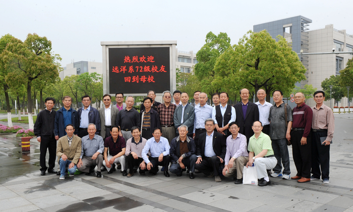 陈景德等校友代表远洋系72级校友发言,倾诉了对母校、对老师的感激之情以及对同学的思念之情。他们表示,看到和听到母校的巨大发展和变化,感到由衷的高兴与自豪,母校的培育之情永远难忘,将努力为母校的发展发挥余热,作出应有的贡献。
