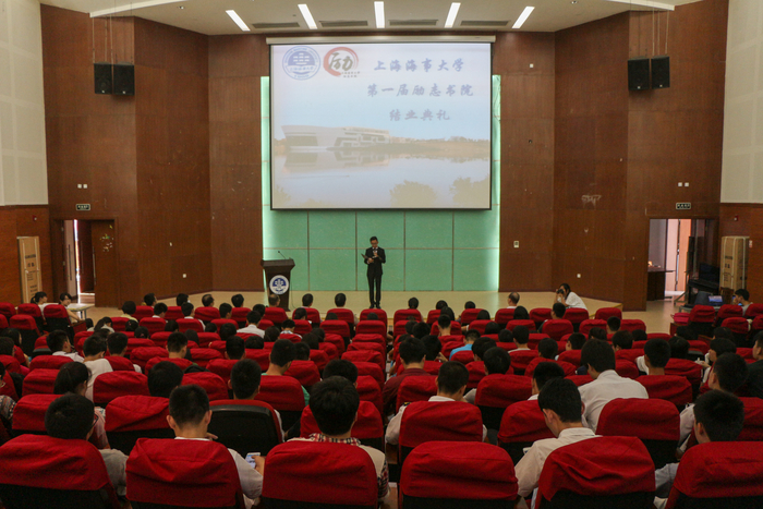 6月24日下午,上海海事大学第一期励志书院结业典礼在学生服务中心邦建报告厅举行。党委副书记、副校长孔凡邨,学生处负责人、带班辅导员以及全体学员出席结业典礼。