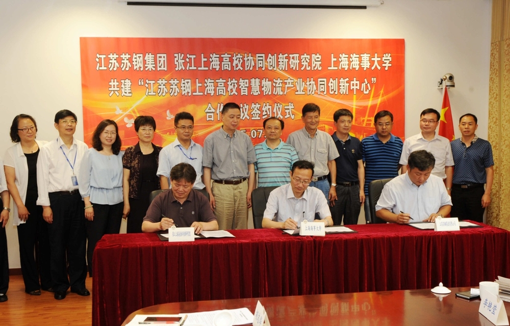 7月2日,江苏苏钢集团、张江上海高校协同创新研究院、上海海事大学共建“江苏苏钢上海高校智慧物流产业协同创新中心”合作协议签约仪式在我校行政楼148会议室举行。