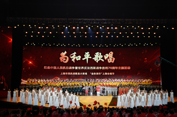 8月30日晚,“为和平歌唱”纪念中国人民抗日战争暨世界反法西斯战争胜利70周年2015年上海市民文化节·金秋闵行上海市民合唱展演在上海大舞台举行。上海海事大学合唱团经选拔登上主舞台,与144支市民合唱队伍同声高歌。此次展演由铭记历史及和平颂歌两部分组成。我校合唱团与外国友人共同演唱了《we are the world》,并参与合唱了《义勇军进行曲》《黄河大合唱》《喀秋莎》《共筑中国梦》等曲目。本次展演将于9月3日在东方卫视播出。撰稿、摄影:团委