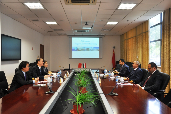 9月16日,阿盟科技与海运学院校长伊斯梅尔·法拉格 (Ismail Abdel Ghafar Ismail Farag)一行3人来上海海事大学访问,校党委书记金永兴及国际交流处、交通运输学院负责人等会见来宾。