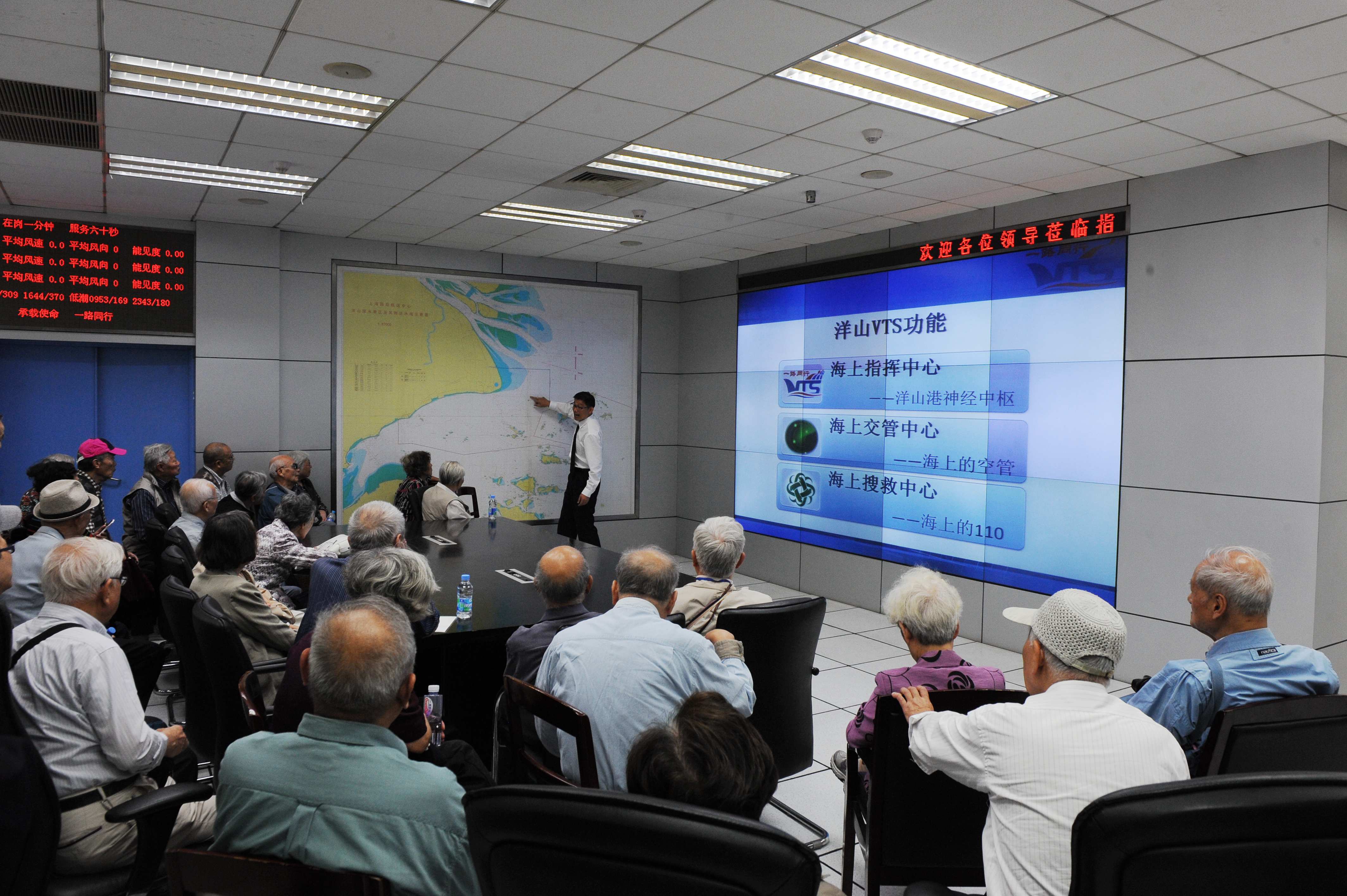 老校友们在校长办公室(校友联络处)、商船学院校友会、洋山港海事局办公室工作人员的陪同下参观了洋山海事局展览馆、洋山港海事局指挥中心和上海洋山深水港。游览活动圆满结束后,大家在洋山深水港观景平台合影留念。