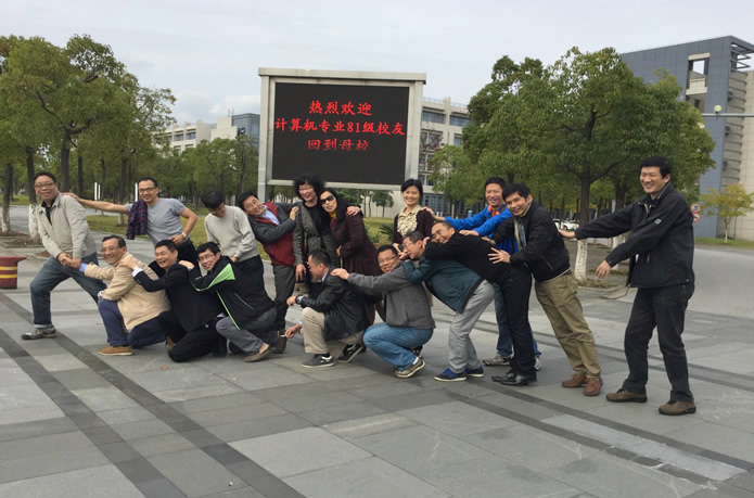 “阔别三十年,人依旧,情更浓,友谊地久天长!”计算机系81级在信息工程学院举行了一次特别的主题班会,班干部王强和杨丽萍将20余名老同学带进了“课堂”,带进了人生的“时光穿越通道”。在主题班会上,校友们介绍了毕业后的工作、生活情况,分享了自己的人生感悟,表达了对母校发展的深情祝福。