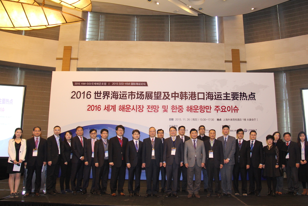 11月26日,由上海国际航运研究中心(SISI)和韩国海洋水产开发院(KMI)联合主办的“2015 SISI-KMI 国际海运论坛——2016世界海运市场展望及中韩港口海运主要热点”在上海外滩茂悦酒店举行。