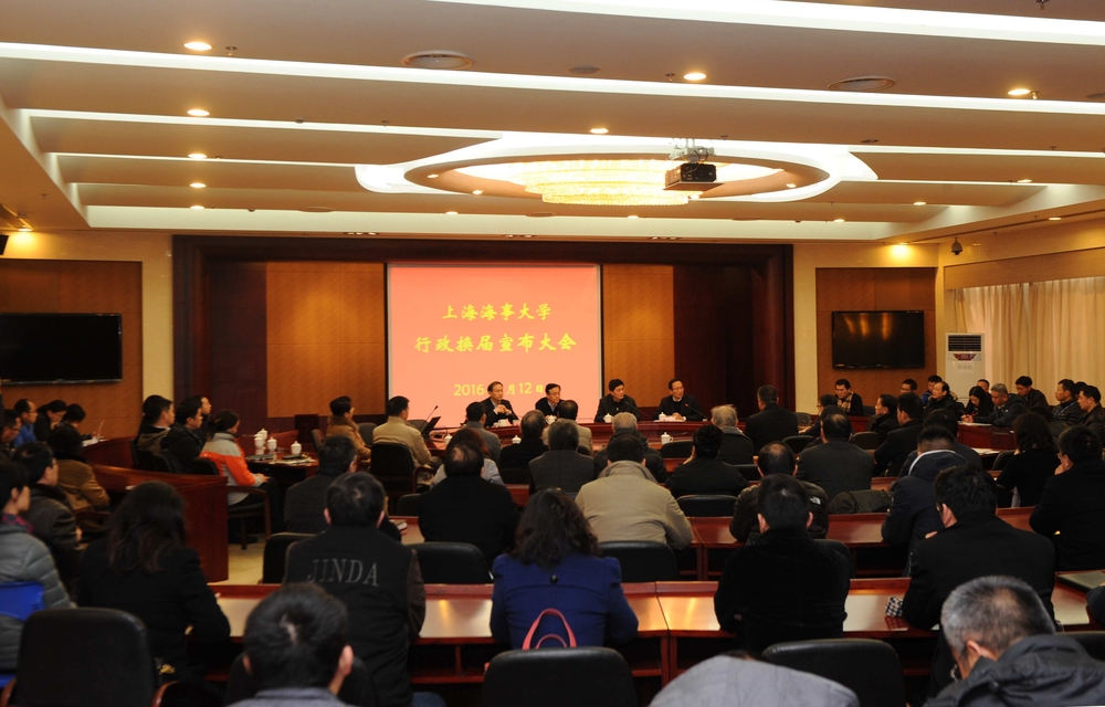 1月12日上午,上海海事大学行政换届宣布会举行。上海市教卫工作党委书记陈克宏、上海市委组织部宣教科技干部处处长夏明林一行,我校校领导、老领导、学校中层以上干部和各方面代表等出席。