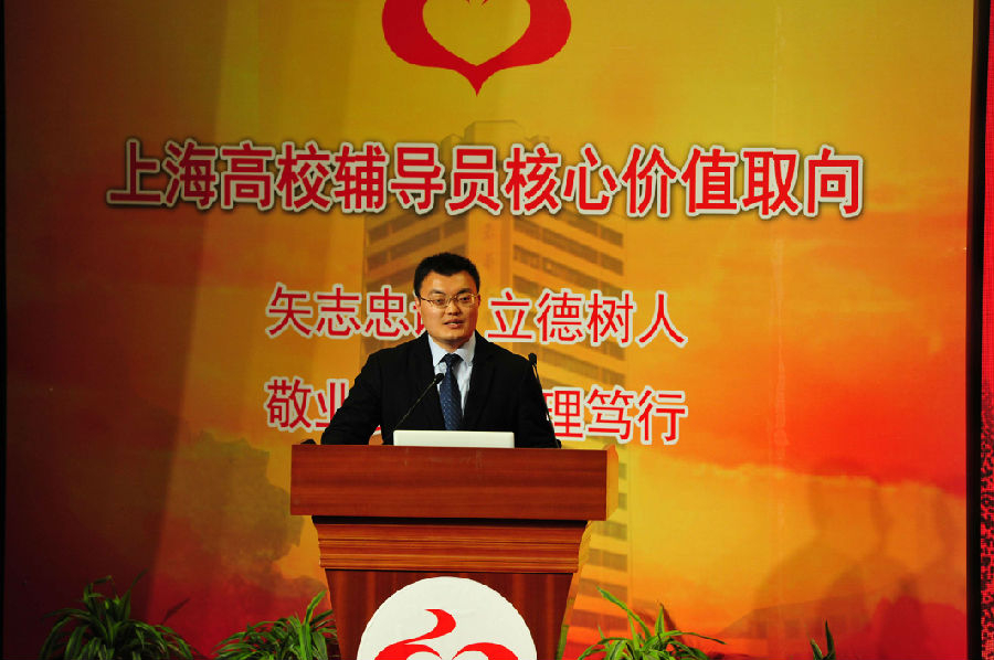 1月12日下午,“2015年度上海高校辅导员队伍建设月总结会暨第十二届辅导员论坛”在东华大学举行。上海海事大学辅导员马强荣获“2015年度上海高校辅导员年度人物”荣誉称号,并作为辅导员代表发言。