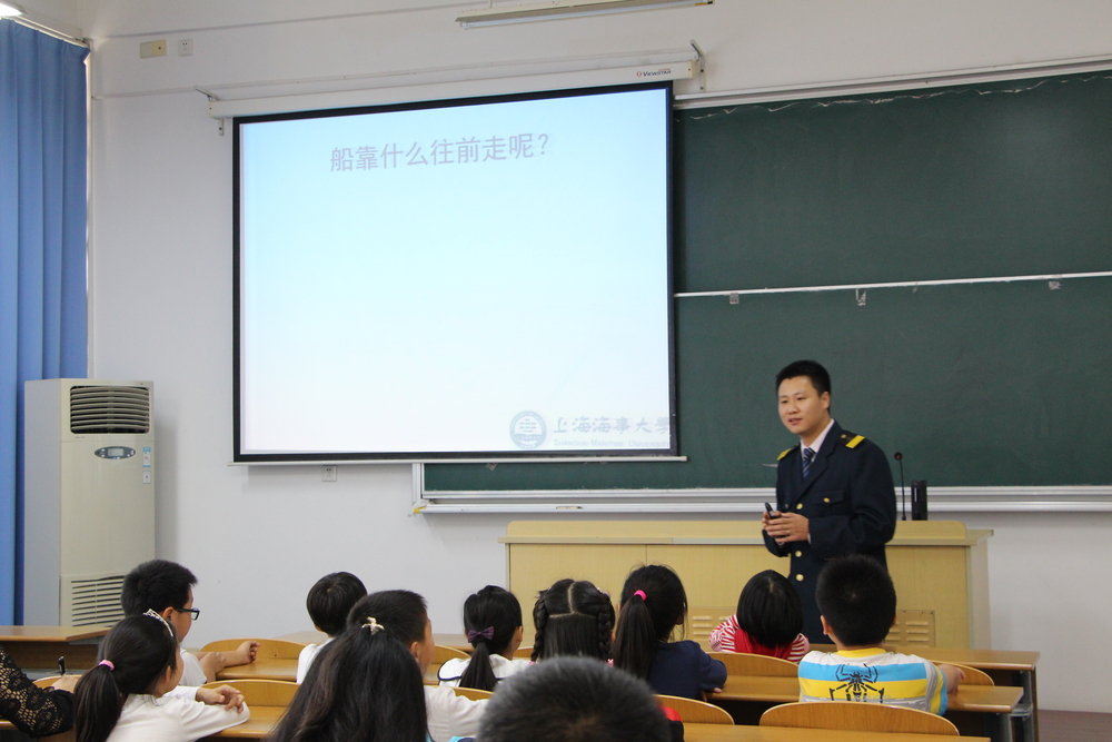 在相关部门与临港第一小学思想火花的共同碰撞下,群策群力创办“儿童大学”的想法初具雏形。2015年10月,临港第一小学“儿童大学”启动了首次预备活动,老师带领孩子们一起走进我校,商船学院席永涛副教授给孩子们上了一堂关于“船舶知识小探究”的课程,并带着他们参观校园里的各种船模,一起探究船的世界。在老师的讲解下,孩子们兴致勃勃地辨认着船上的每个部件。