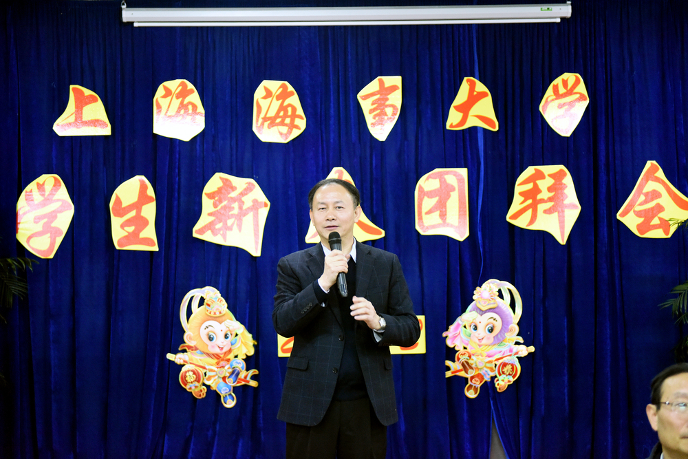 吉羊辞旧岁,金猴迎新春。2月4日下午,上海海事大学2016年寒假留校学生迎春团拜会在海联食堂二楼举行。洋泾街道办事处副主任花敏,副主任杨光明,我校党委书记金永兴,校长黄有方,党委副书记、副校长王海威,各职能处室、学院负责人及辅导员代表与我校寒假留校学生欢聚一堂,辞旧迎新,共进“年饭”,共话来年。