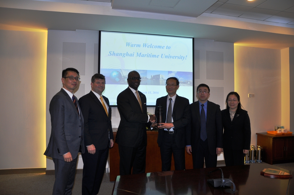 3月15日,利比里亚海事局局长Binyah Kesselly、利比里亚国际船舶与企业登记处CEO Scott Bergeron等来上海海事大学访问,黄有方校长、施欣副校长及国际交流处负责人等在东明路校区会见来宾。