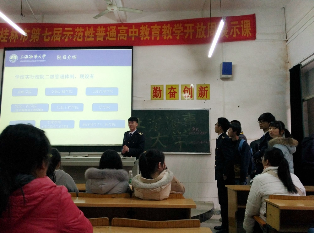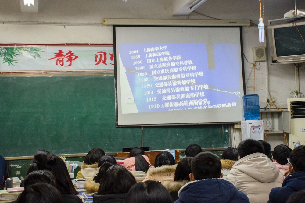 学校热心教职工也积极主动参与此次活动,他们放弃寒假宝贵休息时间,深入家乡重点中学,结合我校航运、物流、海洋等重点特色学科在专业实力以及社会认可度等方面的整体优势,重点推介优势学科,不仅拓宽了相关高中学生的知识面和视野,同时也加强了其对上海海事大学的认可度。