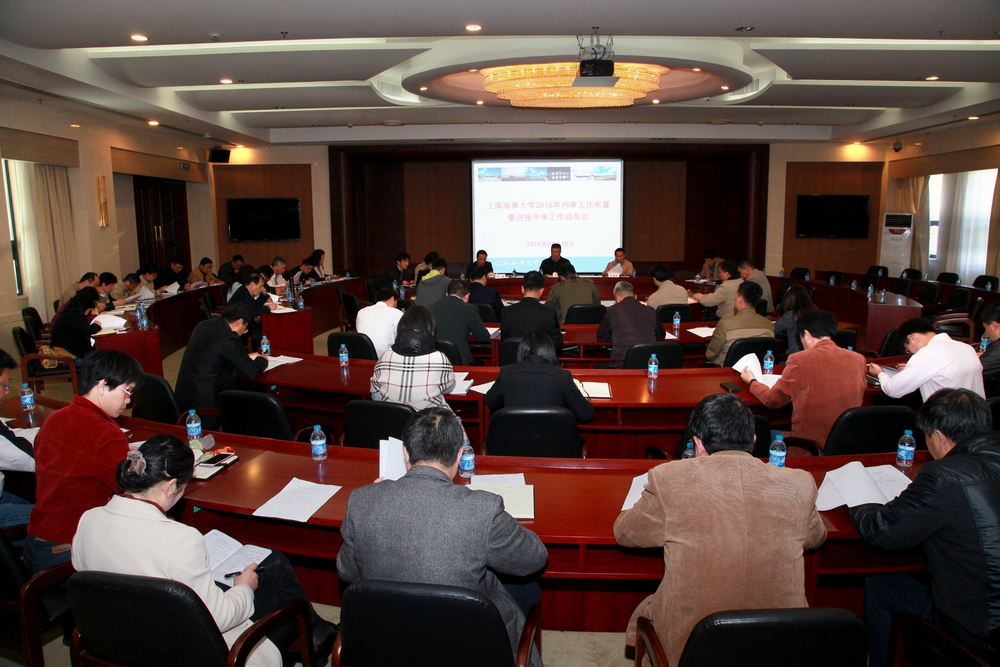 4月18日,上海海事大学2016年内审工作布置暨迎接外审工作动员会举行。学校质量管理体系管理者代表、副校长杨万枫,副书记、副校长王海威,副校长严伟,以及全体内审员、外审部门负责人、各学院(部门)办公室主任和质量管理办公室成员参加会议。
