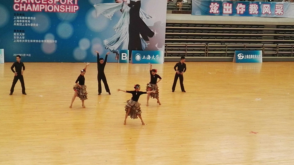 5月14日,2016年上海市学生阳光体育大联赛体育舞蹈比赛在复旦大学举行。复旦大学、同济大学、东华大学、华东政法大学、上海大学、上海海事大学等几十所高校的代表队参加了本次比赛。我校在拉丁舞校队教练姚秀华老师和领队朱德喜老师带领下再获佳绩。