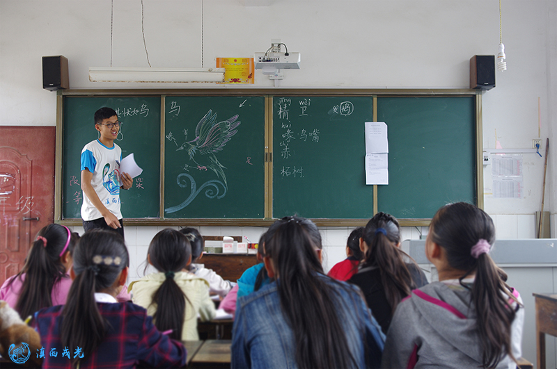 18日上午,成员分成4个小队,在腾冲猴桥镇育英完小附近的王家寨、徐家寨、许家寨、苍山、金家村、小高粱等附近村寨进行招生宣传,并从家庭基本情况、亲子日常生活交流情况、家长的教育观念及重视程度、村民法律意识、孩子兴趣爱好与学习情况等方面出发进行家访,尽量做到对每一个受访家庭全方位、多角度的了解,以便接下来的教学活动更加有倾向性、针对性。下午2 时30分,招生报名工作正式开始,在2小时的时间里,共计109名同学完成报名注册。开学典礼在队长朱玲弋雯的主持下正式开始,队员介绍、课程介绍、校规班规宣读、认识班主任等环节有条不紊地进行。