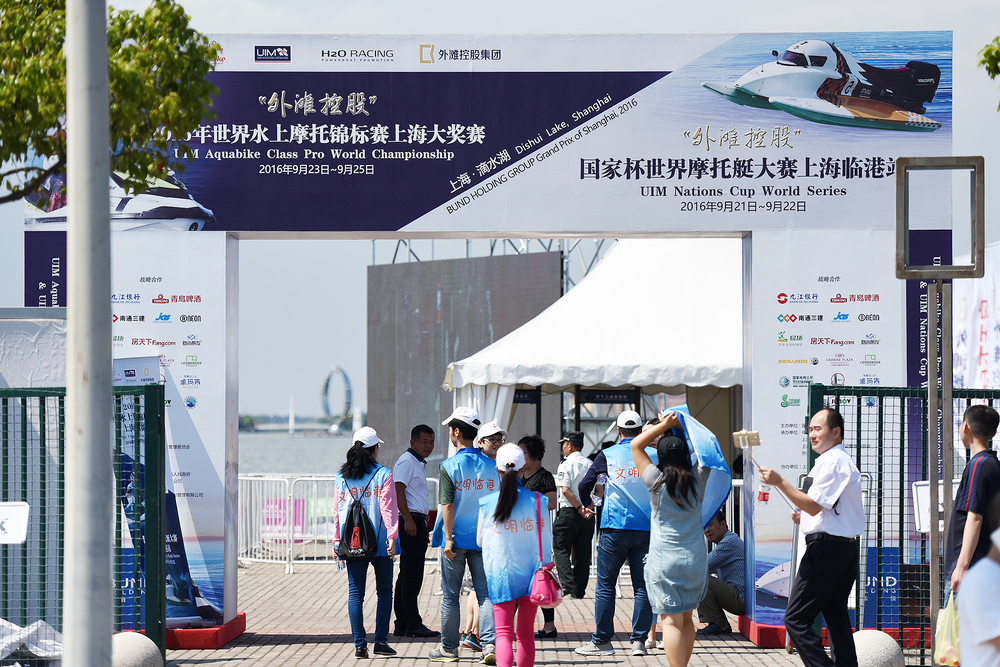 9月22日下午,2016年“外滩控股”世界水上摩托锦标赛上海大奖赛暨国家杯世界摩托艇大赛上海临港站在滴水湖畔开幕。上海市副市长赵雯,国际摩联委员会推广委员会主席尼克鲁·迪·桑·吉尔曼诺,上海市体育局党委书记、局长黄永平,浦东新区区委常委、临港管委会党组书记、常务副主任陈杰等出席仪式。我校共有160名学生为此次大赛提供志愿服务。