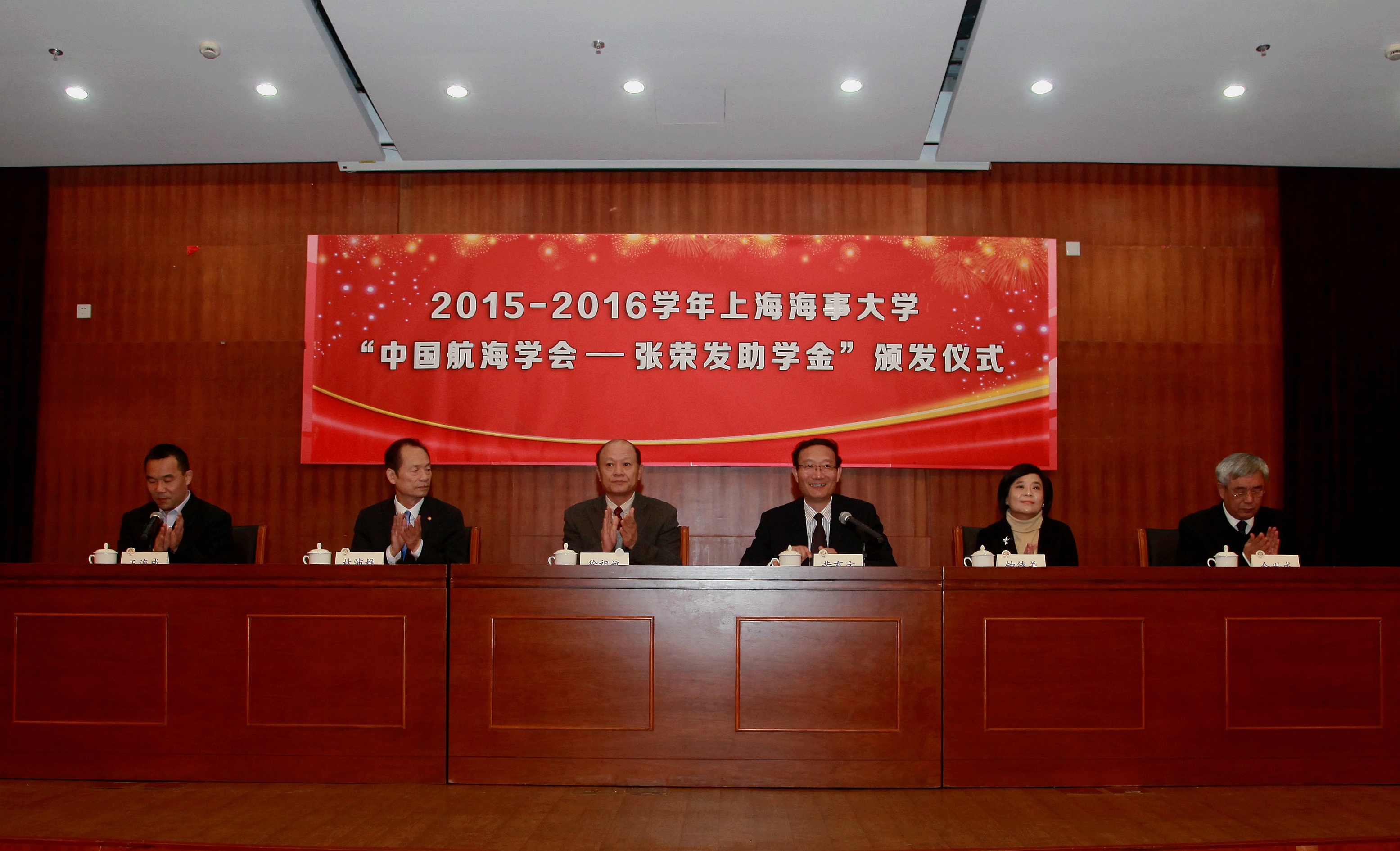 11月23日,2016年中国航海学会——张荣发助学金颁发仪式在上海海事大学举行。原中国航海学会理事长、国际海事组织首任海事大使徐祖远先生,中国航海学会理事长、我校校长黄有方,党委副书记、副校长王海威,张荣发基金会执行长钟德美女士、长荣海运(台北总公司)副总经理林沛樵先生等出席了颁奖典礼。徐祖远先生和林沛樵先生为上海海事大学、上海职业技术学院共计14名受资助学生颁发证书。