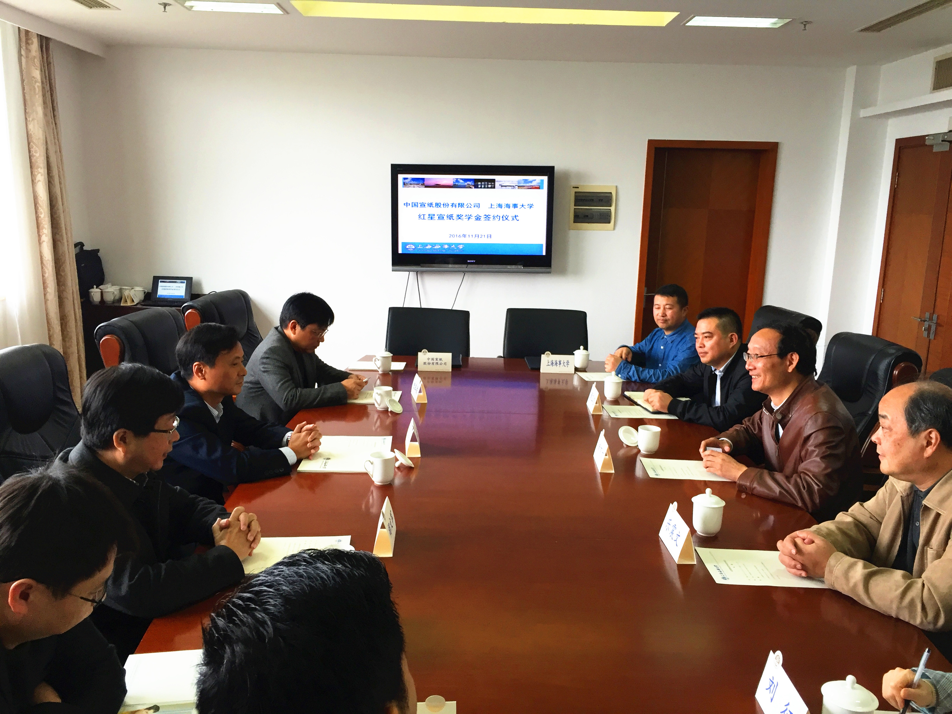 11月21日上午,中国宣纸股份有限公司“红星宣纸奖学金”签约仪式在我校举行。安徽省泾县副县长王厚富、中国宣纸股份有限公司董事长胡文军、燕青集团公司方燕青等出席签约仪式,我校校长黄有方及相关部门负责人热情接待来宾。