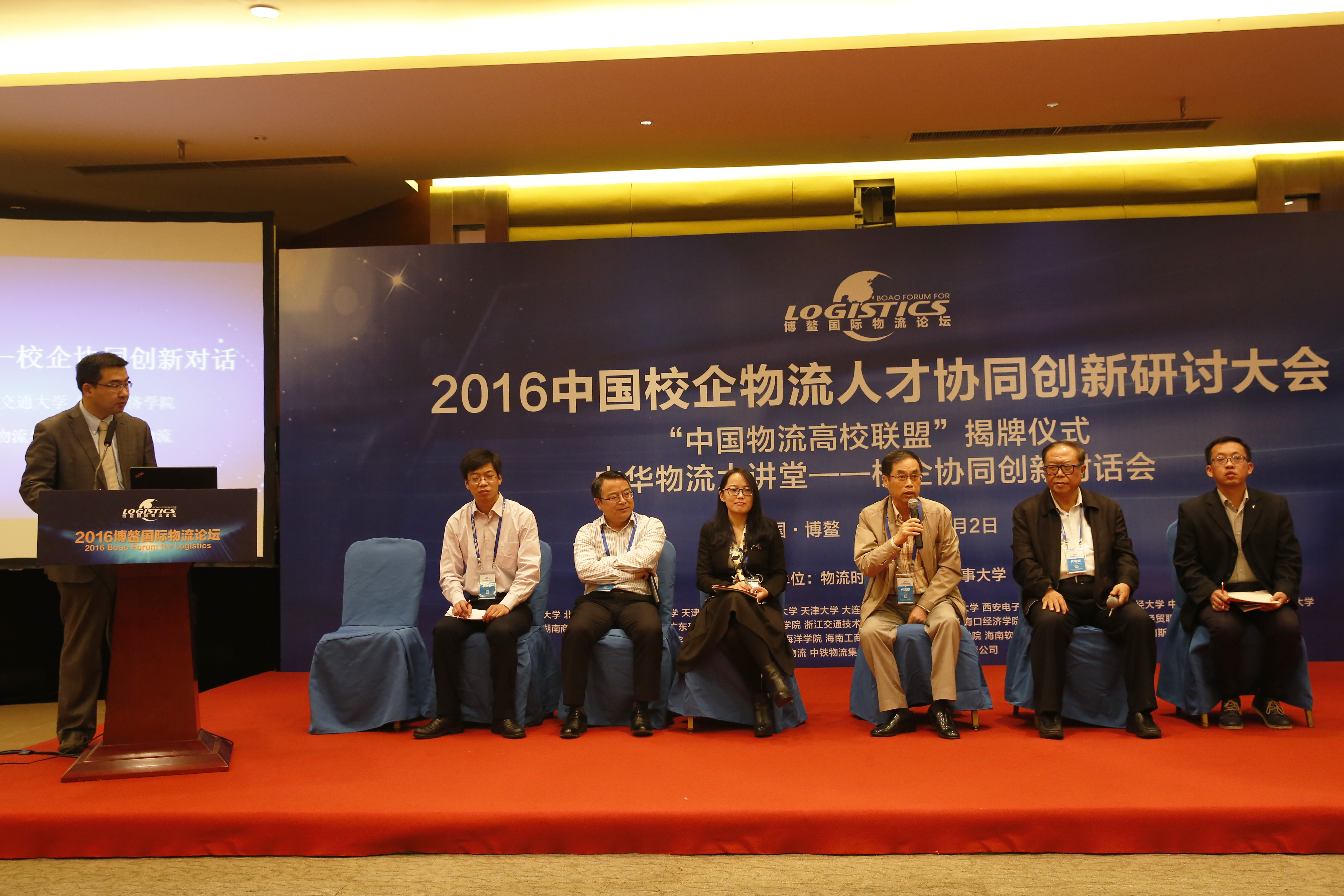 12月2日,在2016博鳌国际物流论坛上,由上海海事大学和《物流时代周刊》共同主办的2016中国校企物流人才协同创新研讨大会成功举行。教育部高校物流类专业教学指导委员会主任委员、我校校长黄有方,《物流时代周刊》杂志社社长倪玮出席大会并致辞。教育部学生司原司长王炽昌、北京交通大学交通运输学院党委书记朱晓宁、北京物资学院物流学院副院长姜旭等发表主旨演讲。
