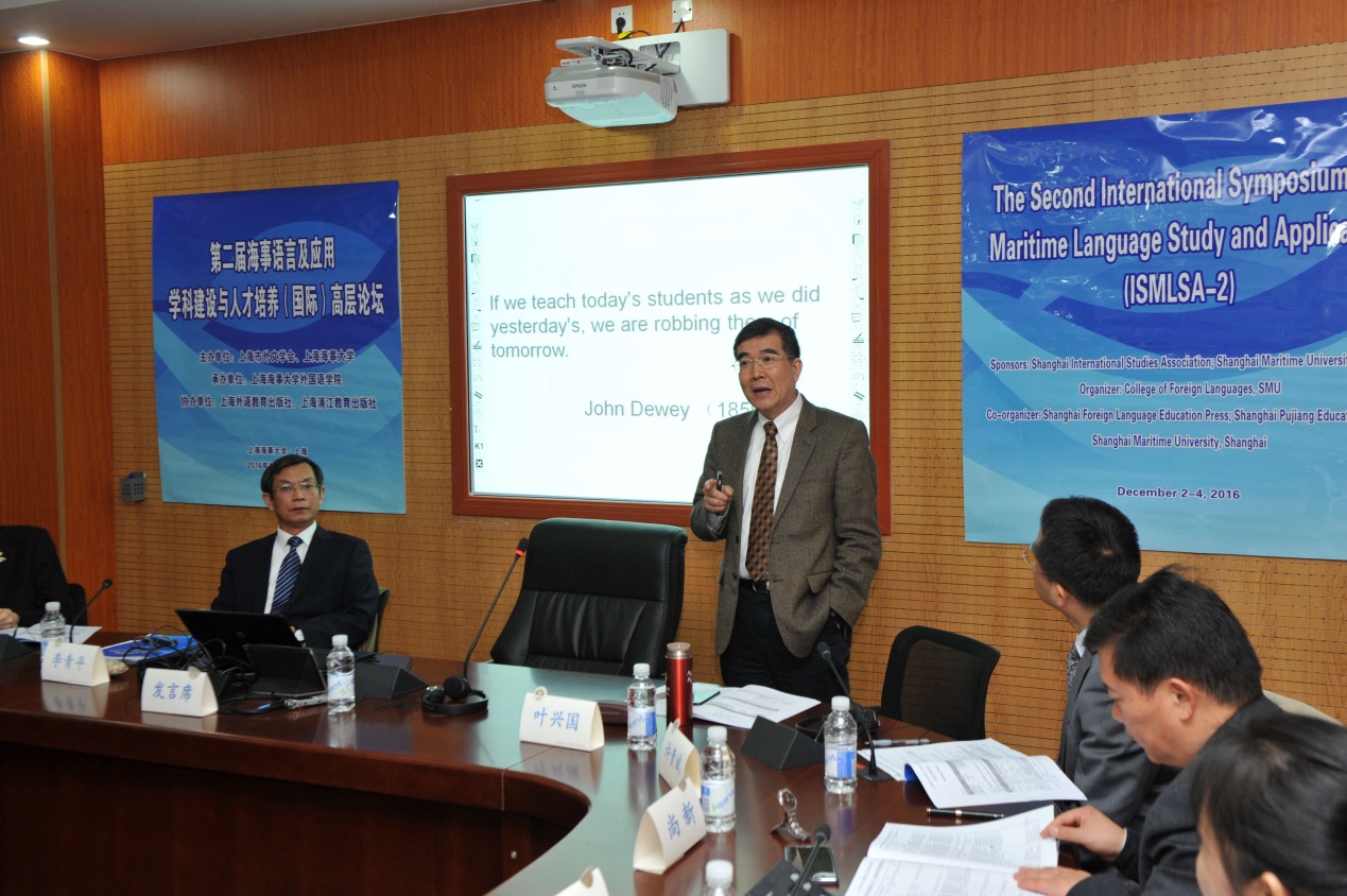 12月2日至4日,第二届海事语言及应用学科建设与人才培养(国际)高层论坛在上海海事大学举行。本次高层论坛的主题是“国际海事制度性权利争取与海事语言学科建设和人才培养”。国际海事教师联合会(IMLA)主席、我校党委书记金永兴,上海市外文学会会长、原上海对外经贸大学副校长叶兴国,交通运输部海事局巡视员、国际海事组织审核专家、原中国海事局副局长李青平,世界海事大学副教授Clive Cole,交通运输部长江口航道管理局副局长许贵斌,大连海事大学张仁平教授,对外经济贸易大学王立非教授,航运和金融产业基地总裁吴志海先生,以及70余位来自英国、澳大利亚、菲律宾、南非共和国等海内外专家、学者参加了会议。