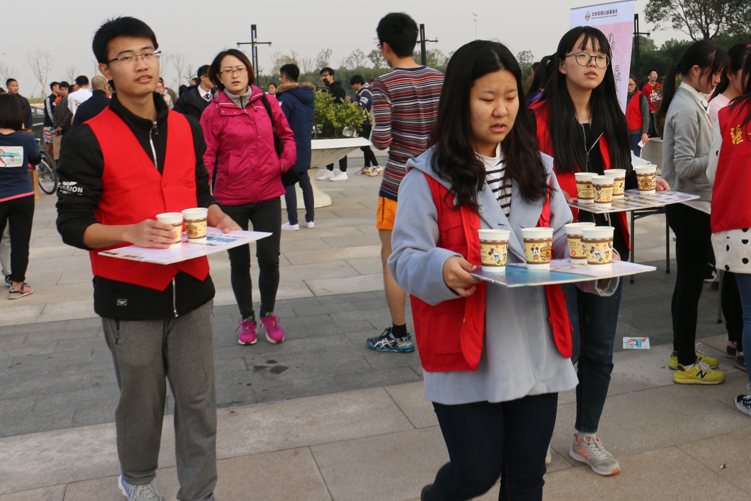 我校学生还参与了“慈善义跑”的志愿者活动,协助运动员们领取号码牌、寄存随身物品,并做好引导、统计成绩等工作。