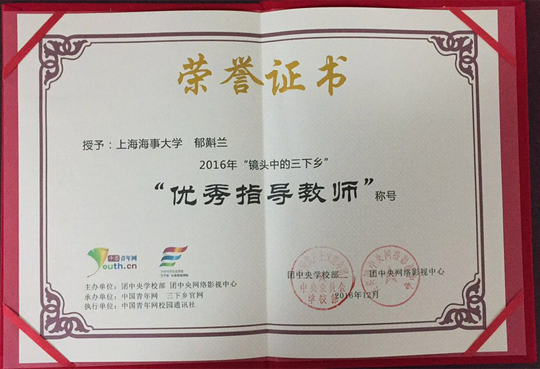 近日,由团中央学校部、团中央网络影视中心共同组织开展的2016年“镜头中的三下乡”活动评选结果揭晓。上海海事大学被评选为“优秀单位”,我校“黔西南雨路支教队”被评为“优秀团队”,我校教工赵睿、郁斢兰、陈祯如被评为“优秀指导教师”,杨竣淇同学被评为“优秀学生通讯员”。