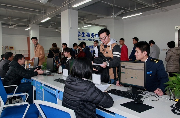 学生事务中心试运行四个多月以来共接待学生10000余人次,办理普通在读证明425份、出入境证明278份、其他类证明206份,审核通过87份贷款材料,收取保险材料51份,调整学生寝室496人次,办理各类就业材料675份,现场接待各类咨询2200余人次,电话咨询600余人次,网络咨询130余人次,办理团委业务700余人次,接待失物招领1000余人次,电影票业1500余人次。