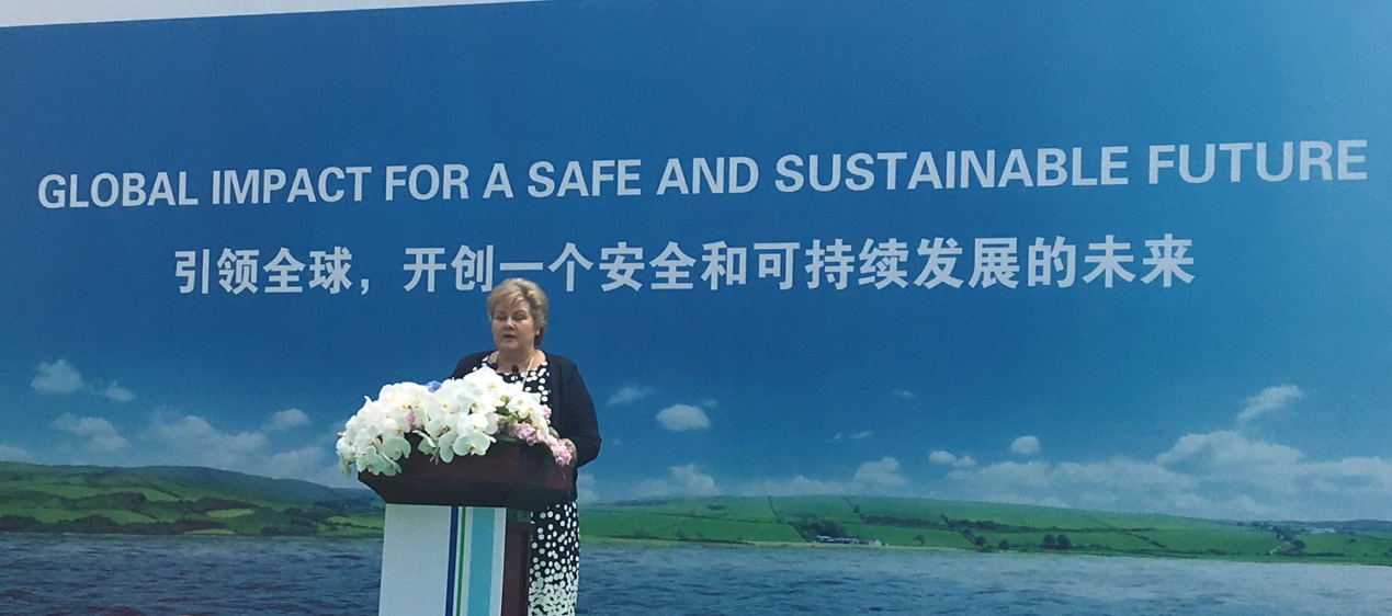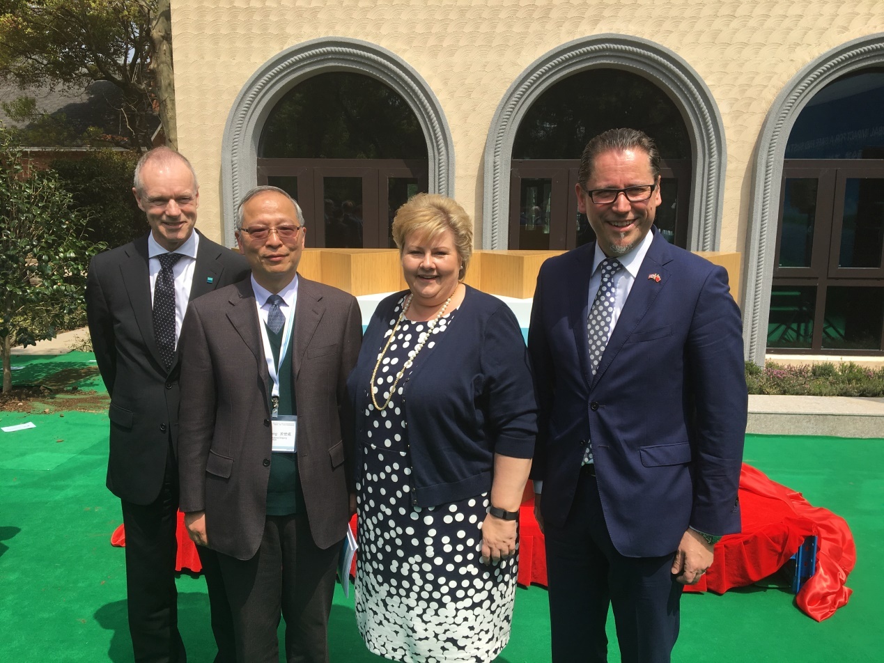 4月8日上午,挪威-德国劳氏船级社举行大中国区总部近零碳排放办公园落成启用仪式。挪威首相索尔贝格出席仪式并致辞。上海国际航运研究中心主任於世成教授和秘书长真虹教授应邀出席仪式。
