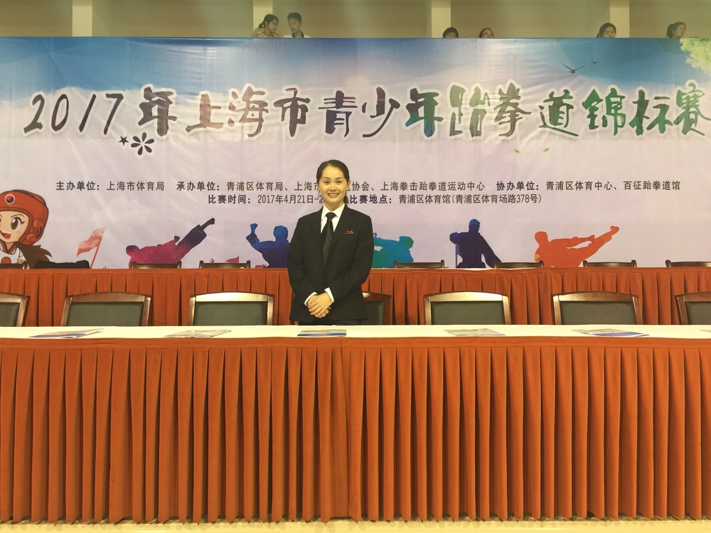 4月22日,2017年上海市青少年跆拳道锦标赛在青浦区体育馆举行。我校文理学院体育部丁响老师应邀参加本次大赛,并担任总裁判长。丁响老师是跆拳道国家级裁判员,上海市跆拳道协会裁判委员会主任,她多次担任上海市跆拳道锦标赛等赛事的总裁判长。2017年上海市青少年跆拳道锦标赛由上海市体育局主办,青浦区体育局、上海市跆拳道协会和上海拳击跆拳道运动中心承办。
