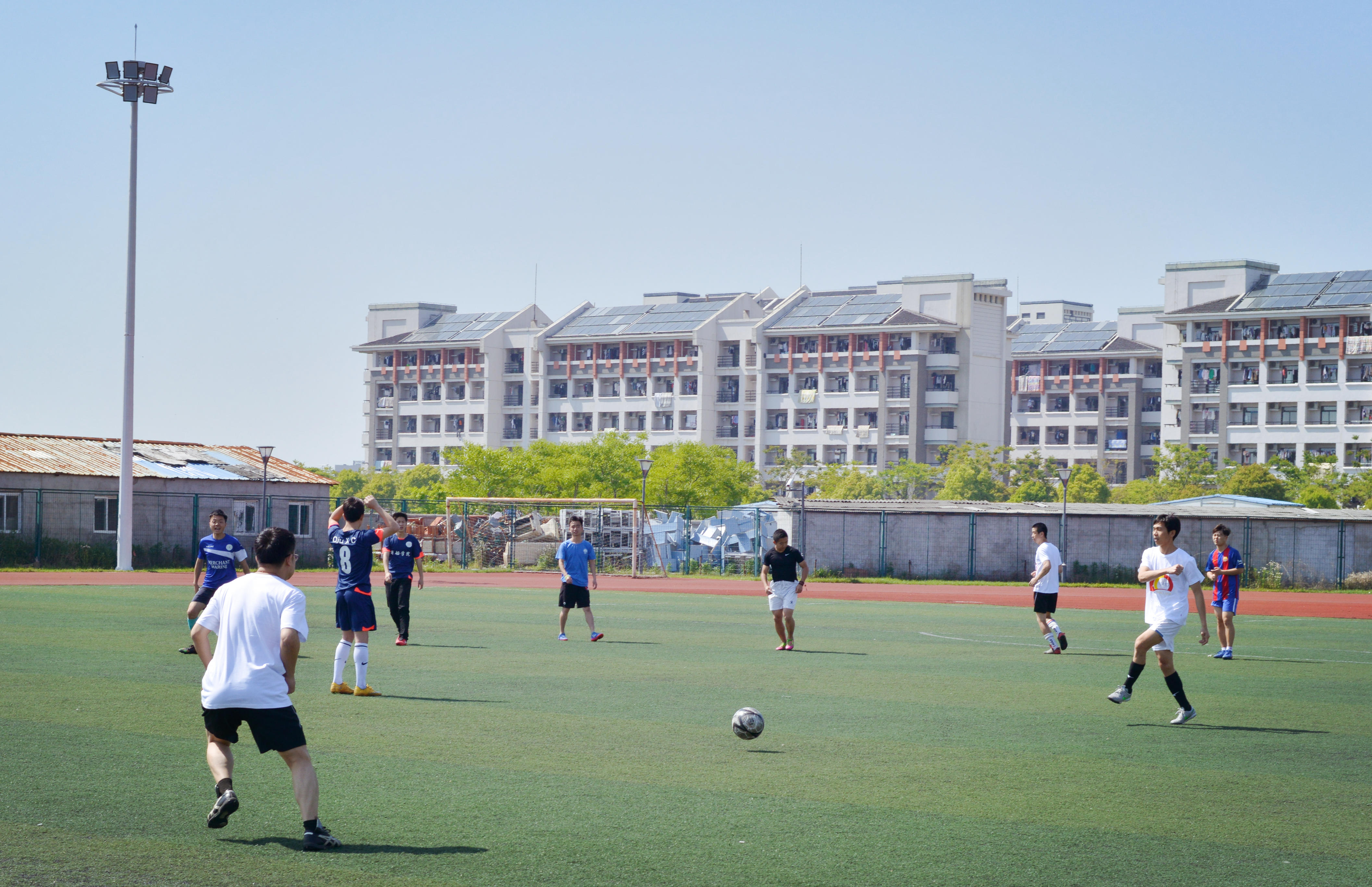 返校期间,校友们参观了校史馆、“吴淞”号特种模拟船、海大苗圃,并与商船学院在校生举行了一场足球友谊赛。
