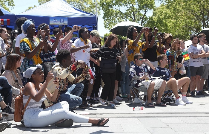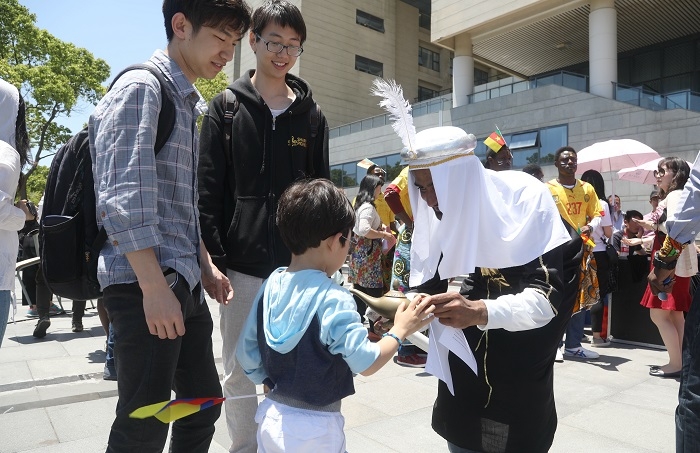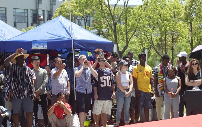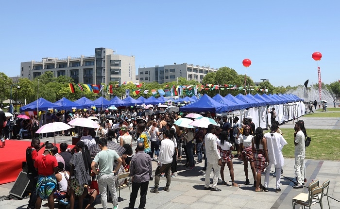 5月17日,上海海事大学第九届国际文化交流节在临港校区图书馆前广场举行。来自近30个国家的200多名留学生与我校师生参加了此次活动。此次活动由国际教育学院、国际交流处主办,并得到了上海市浦东新区人民政府侨务办公室、上海市欧美同学会、上海市留学人员联合会浦东分会、上海市留学人员联合会上海海事大学分会的大力支持。