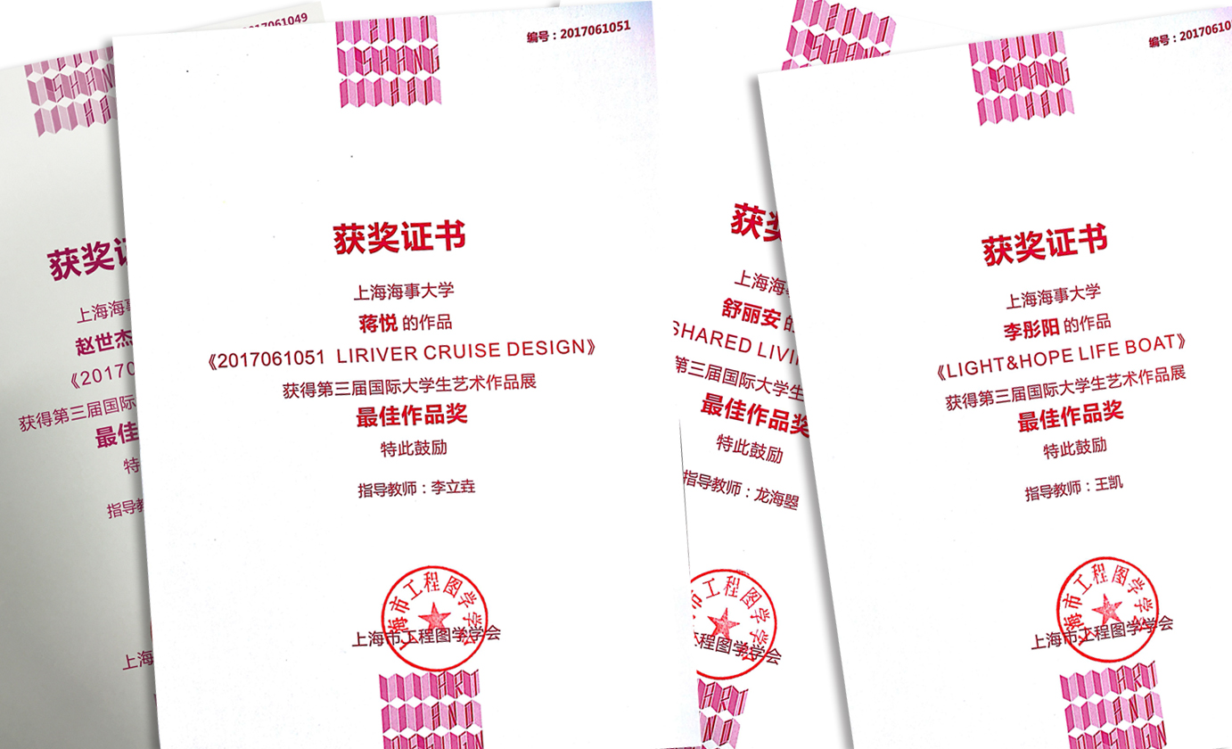 日前,由上海市工程图学学会主办的第三届国际大学生艺术设计作品展在上海东华大学举办,来自国内外的40余所高校的学生参加本次展览。上海海事大学徐悲鸿艺术学院工业设计专业教师王凯、龙海曌、李立垚指导的学生作品获得了4项“最佳作品奖”。