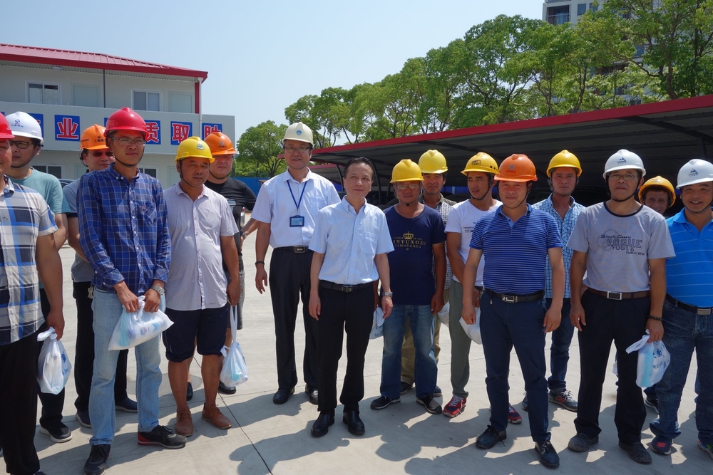严伟副校长代表学校对在高温天气下依然坚守岗位的一线建设者表示衷心感谢,并对施工单位、监理单位提出两点要求:一是确保项目安全生产,落实市有关文件要求;二是确保工程质量。