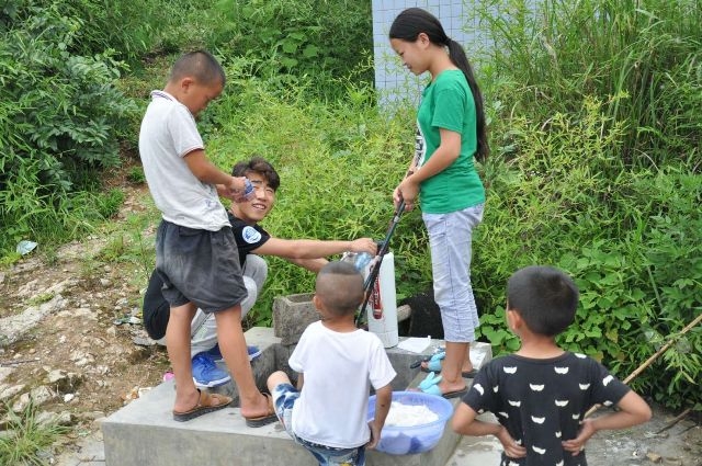 2017年,当湖南洪涝灾害的新闻铺天盖地时,我们依然没有停下前进的步伐。25个小时,伴随着绿皮火车的哐哐作响。支教队员肩负着支教物资,挺着疲惫的身躯义无反顾的前行着,期待着看到孩子们充满希望的目光。为了让孩子喝上干净的水,我们众筹为学校安上了净水器。
