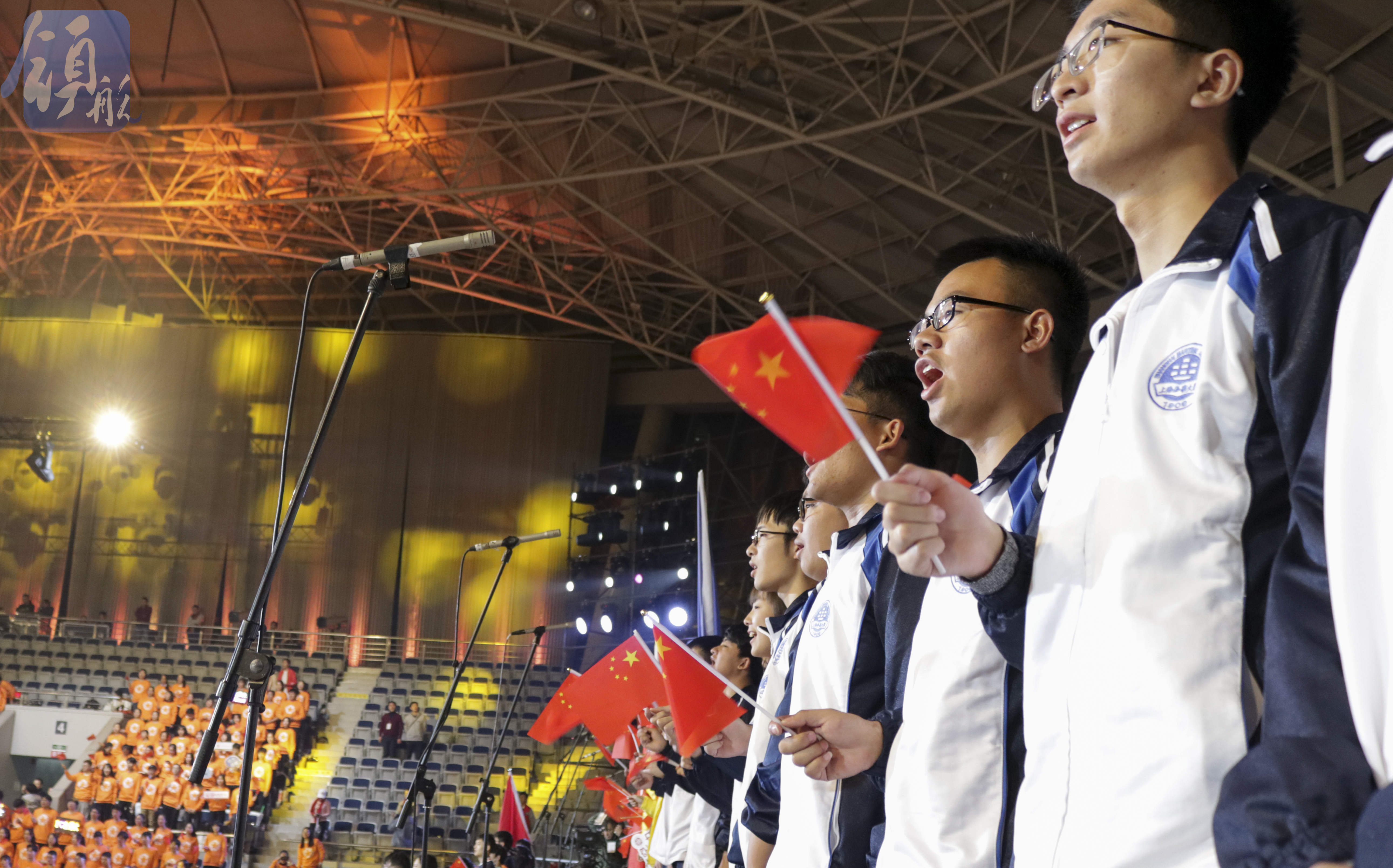 歌会现场,3000多名学生以各自学校为单位构成16个方阵。在拉歌环节中,我校学生组成的方阵带来了歌曲《我的未来不是梦》,彰显了海大学生们的青春活力和朝气。随后,我校“创”乐团和上海理工大学合作表演的原创歌曲《创梦》,引起了现场观众对青春梦想的共鸣,将现场气氛推向高潮。