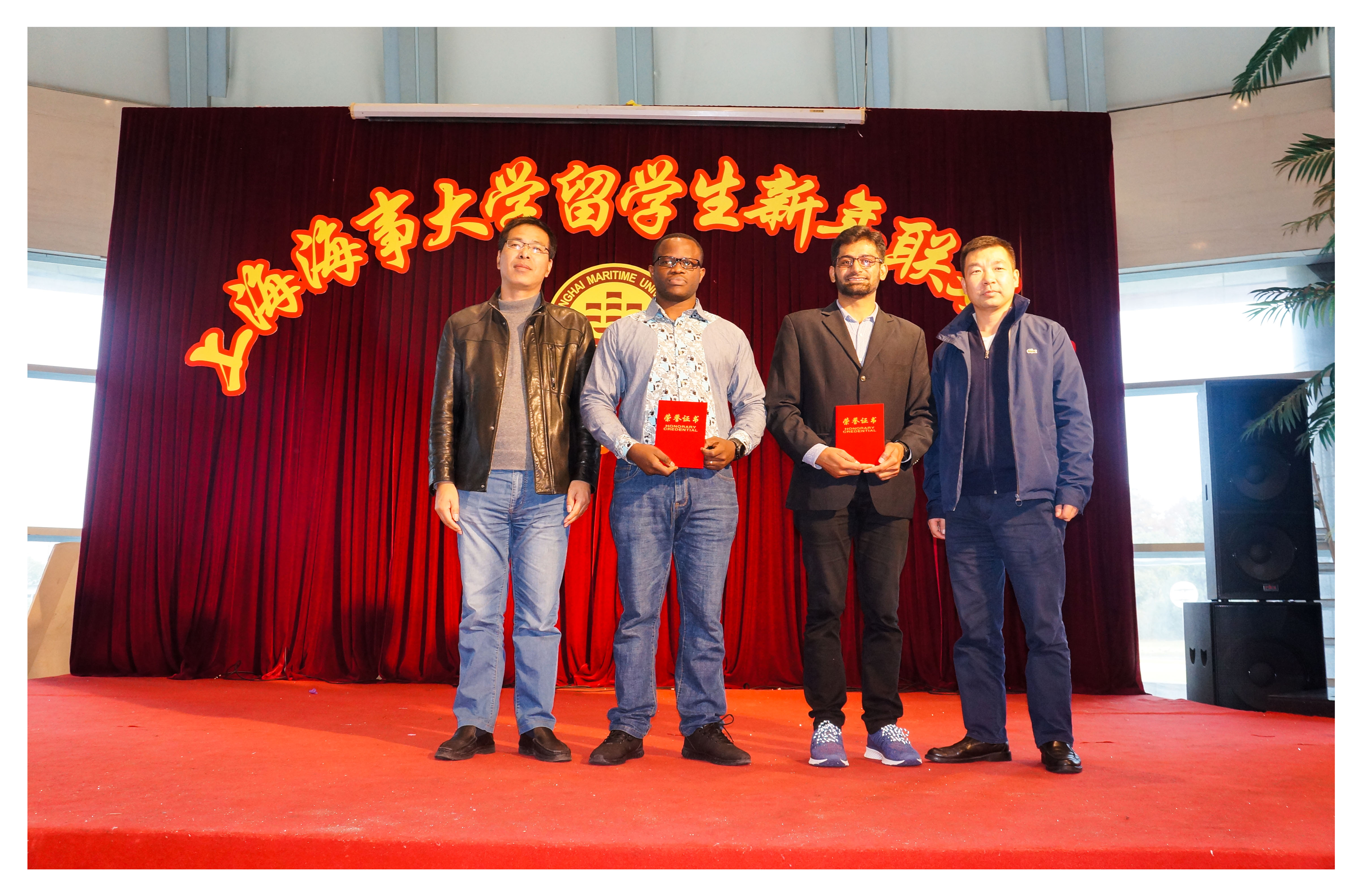 近日,上海海事大学举行留学生新年联欢会。学校相关学院、职能部门负责人与全体留学生欢聚一堂,共庆新年。