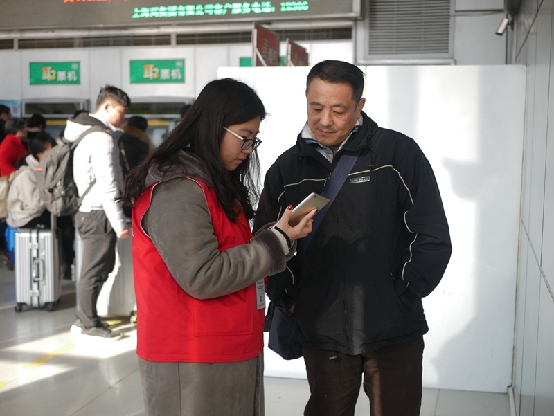海大“小甜橙”们主要分布在售票大厅“心尚”雷锋服务站和自助取票大厅,足迹遍布上海火车站南北两广场。他们秉承“主动、热情、专业、周到”的服务理念,帮助旅客快速完成查询、购票、登车等流程,顺利坐上回家的列车。