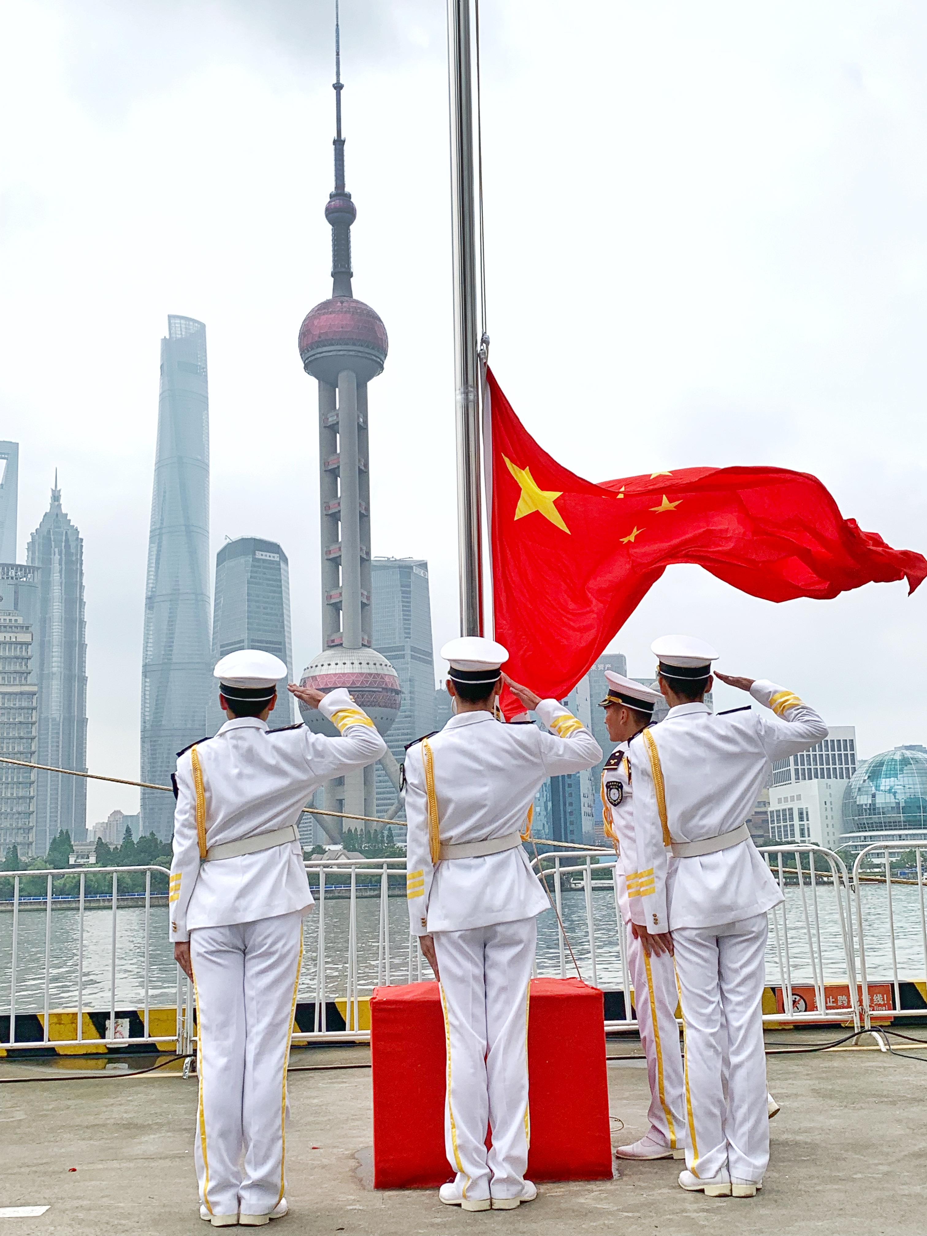 启动仪式上,我校仪仗队配合进行升旗仪式,合唱团为在场的嘉宾带来歌曲《我和我的祖国》,同学们挥舞着国旗、航海日会旗,共同唱响对祖国的祝福,点燃推动航运业高质量发展的激情。启动仪式结束后,举行了公众开放日,我校旗语队向公众传播了旗语文化。
