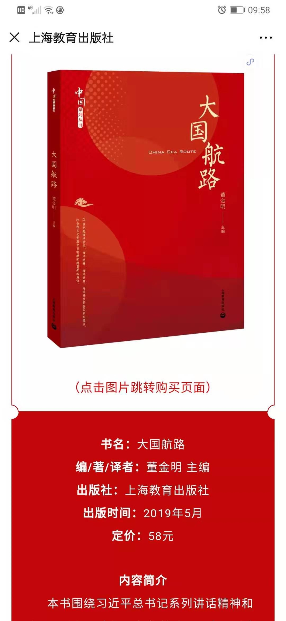 在中华人民共和国成立70周年之际,上海教育出版社策划推出国庆献礼系列书单,我校马克思主义学院院长董金明团队撰写的《大国航路》荣列其中。