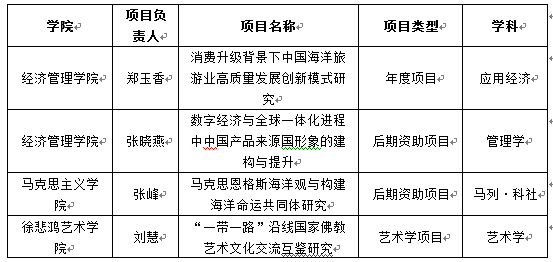 日前,全国哲学社会科学工作办公室公布2019年度部分国家社科基金项目立项结果,上海海事大学4项课题获得资助。其中,1项年度项目,1项艺术学项目,2项后期资助项目。具体立项情况如下:撰稿、 来源:科技处 责任编辑:哈斯 吉娜
