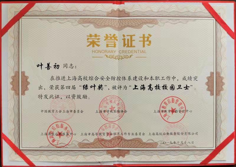 10月18日晚,“不忘初心、庆新中国 70华诞,牢记使命、建后勤保卫新功”上海学校后勤育人、安全育人风采展示活动在上海大学举行。上海海事大学后勤中心武亦文荣获“上海高校后勤标兵”称号,保卫处叶善初荣获“上海高校校园卫士”称号。市教卫工作党委书记沈炜,市教卫工作党委副书记、市教委副主任李昕,中国教育后勤协会副会长张柳华,中国教育后勤协会副会长、上海市学校后勤协会会长李瑞阳,上海市机关事务管理局副局长张晓卯,上海市中小学幼儿教师奖励基金会理事长史国明,以及相关委办局领导、各高校、各区教育代表等900余人出席会议。