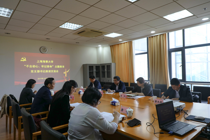 10月23日下午,市委第十一巡回指导组组长周蔚中、副组长刘可、联络员李奎、组员曹光梁等一行四人到上海海事大学,下沉至基层党支部,通过座谈交流调研指导“不忘初心、牢记使命”主题教育。