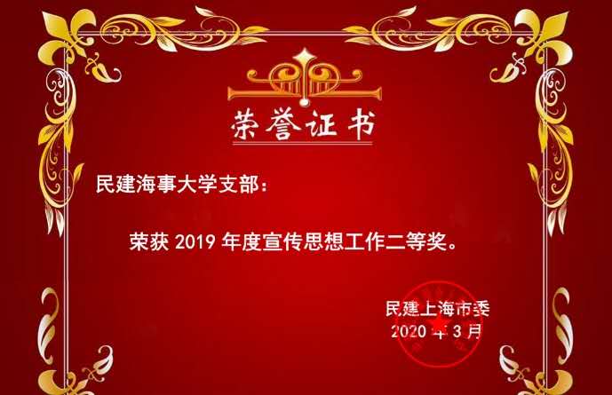 民建上海海事大学支部获民建市委2019年度宣传思想工作先进组织二等奖