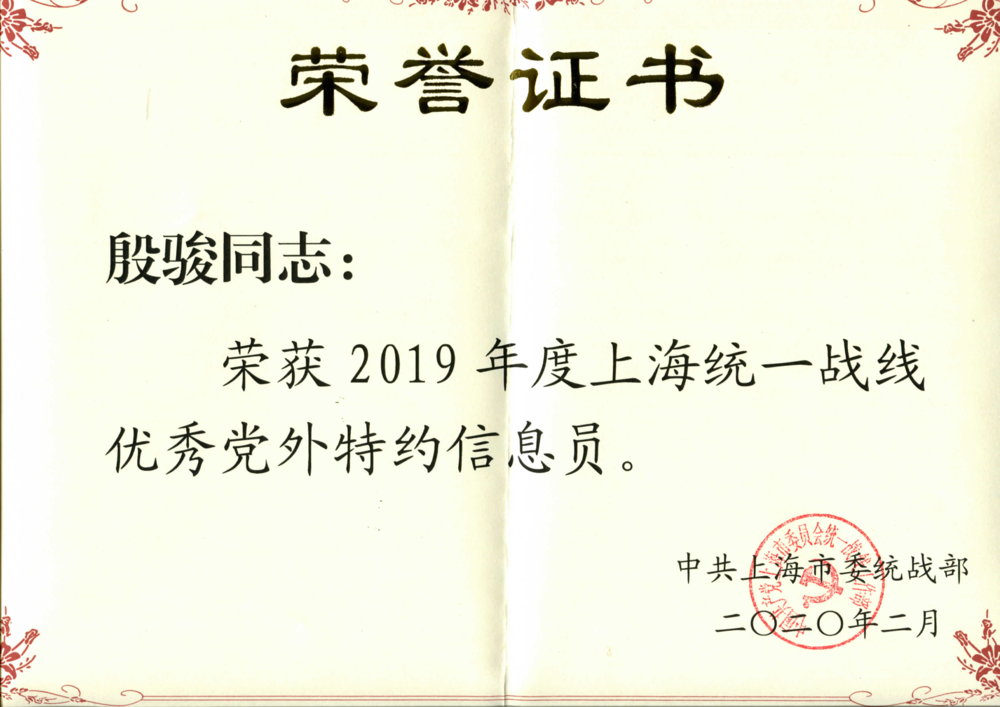 日前,上海海事大学民建会员、欧美同学会会员殷骏老师获2019年度“上海市优秀党外特约信息员”称号,这是殷骏老师继2018年度之后连续第二次获得该项荣誉称号。 该称号是上海市委统战部为表彰在党外信息工作中表现突出的党外人士,包括各民主党派、知联、欧美同学会成员在内的上海市党外人士每年共有10人获奖。撰稿、来源:统战部 责任编辑:哈斯 吉娜