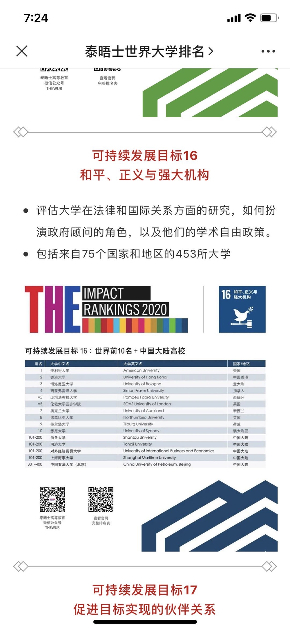 泰晤士世界大学影响力排名是以联合国17个可持续发展目标(SDGs)为基准的新排名体系,展现全球高校为实现可持续发展目标而采取的行动,彰显大学对社会和人类命运共同体所做出的贡献。