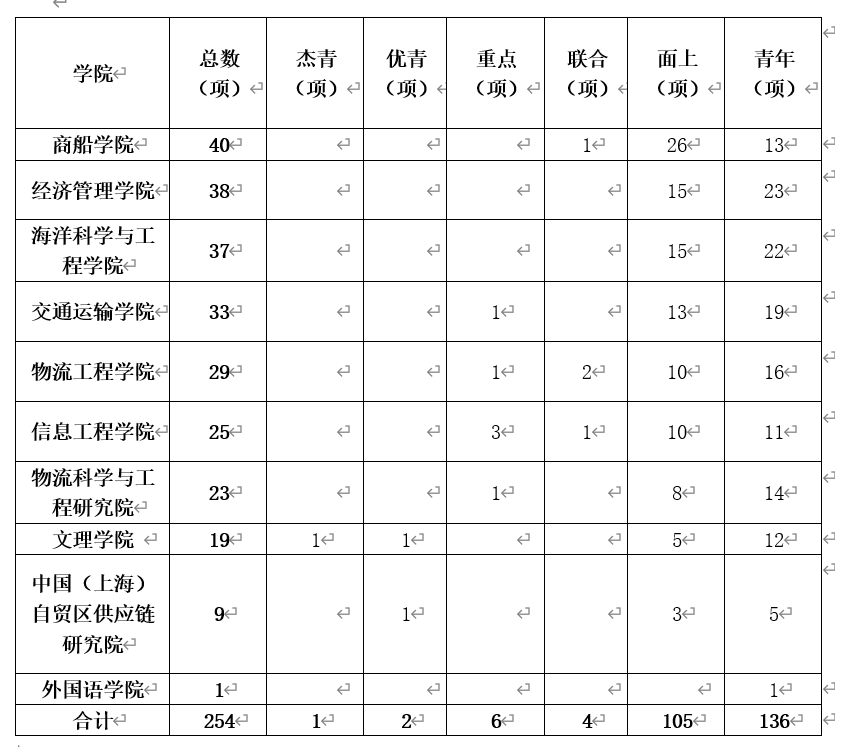 日前,上海海事大学圆满完成2020年度国家自然科学基金项目集中申报工作,全校10个部门共申请254项国家自然科学基金项目。其中包括1项国家杰出青年科学基金项目,2项优秀青年科学基金项目,6项重点项目,3项联合基金项目,105项面上项目,136项青年科学基金项目。高层次项目申报数比上年增长50%。撰稿、来源:科技处 责任编辑:哈斯 吉娜
