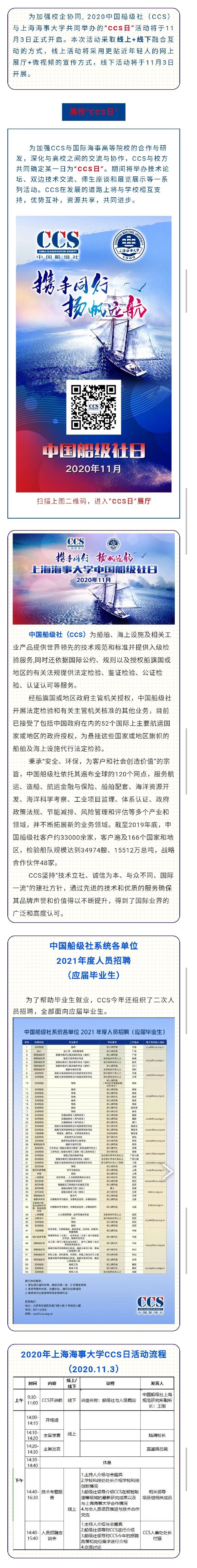 中国船级社(CCS)与上海海事大学共同举办的“CCS日”活动11月3日正式开启