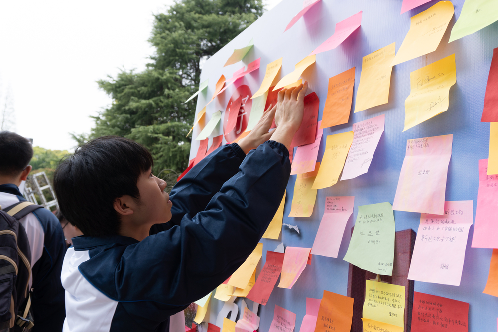 敬献花圈遥寄哀思。同学们面向烈士纪念碑默哀并敬献花圈,寄托对革命先烈的深切缅怀和崇高敬意。学生代表带领着现场的同学真情朗读写给烈士们的一封信,与烈士们跨越时空对话。“你们一直都在,你在歌乐山,他在雨花台,你在长津湖,他在马场町……你们跨过山和大海,你们与我们同在,你们还好吗?这盛世如你们所愿!”字字真切,满怀对革命烈士的敬意与追念。
