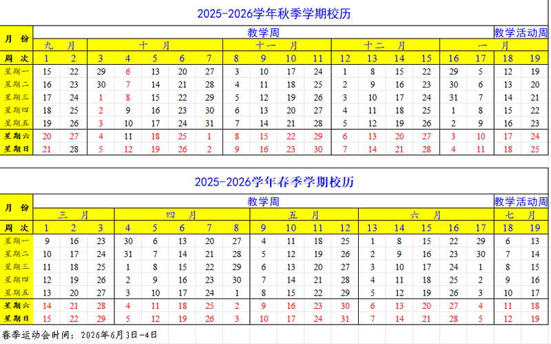 2025-2026学年校历